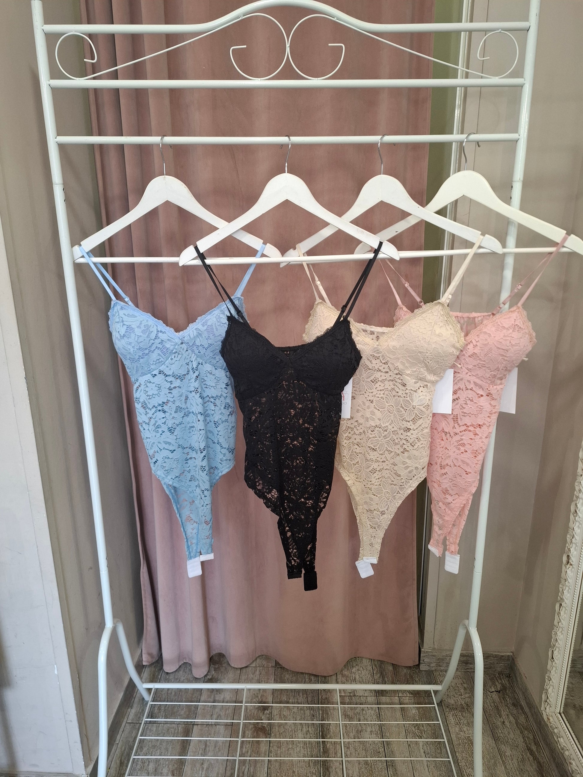 Un tocco di sensualità ed eleganza per ogni occasione! Questo body in pizzo è caratterizzato da un raffinato motivo floreale, scollo a cuore e spalline sottili regolabili. Perfetto da indossare sotto una giacca per un look sofisticato o da solo per un outfit più audace.