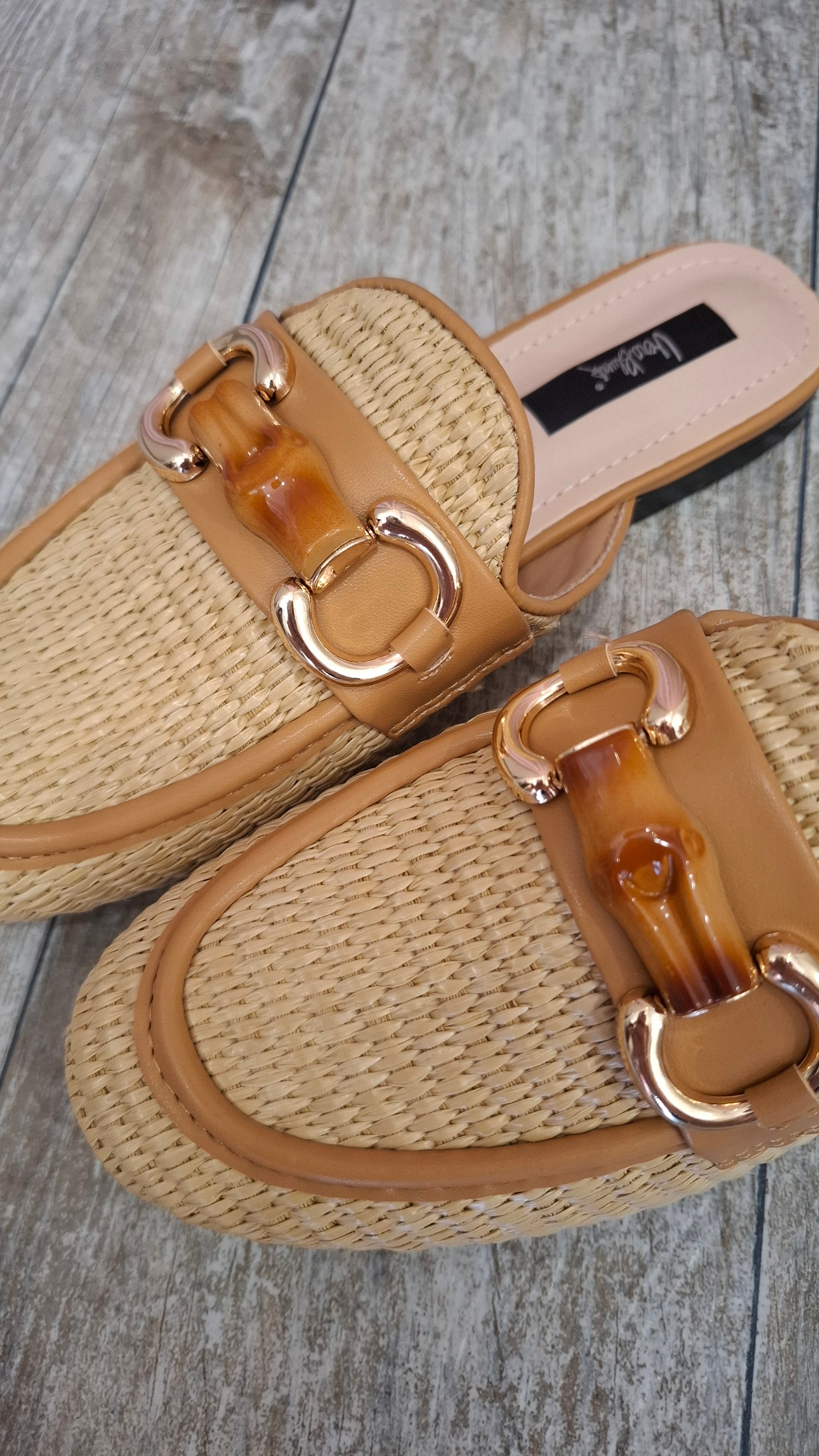 Comodità e stile in un unico modello. Questo mocassino in tessuto intrecciato con dettaglio dorato è ideale per look casual-chic estivi. Facile da abbinare e super leggero!