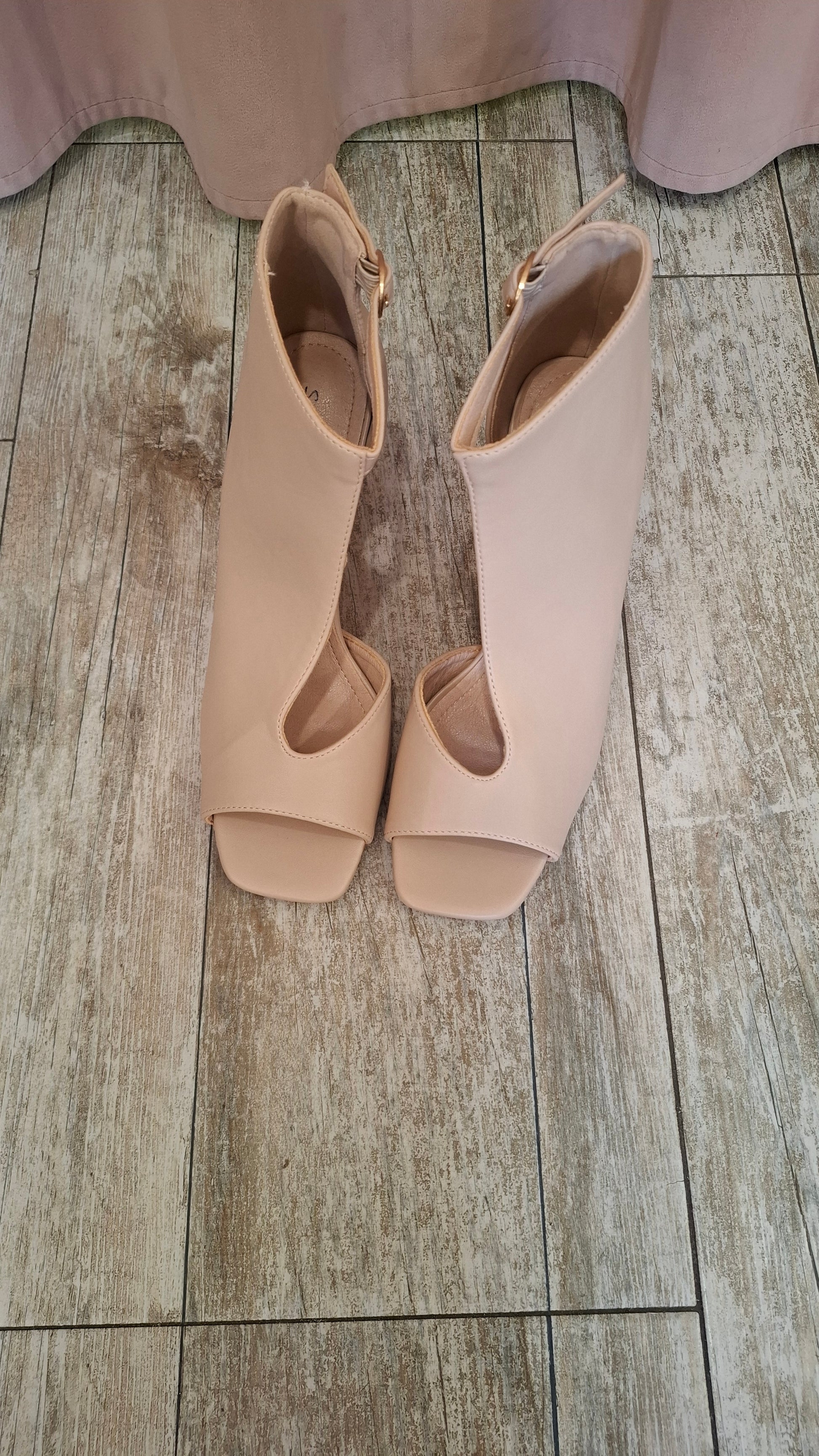 Linee pulite e design sofisticato. Queste scarpe open toe color nude slanciano la figura e si abbinano facilmente a ogni outfit. Perfette per cerimonie o look da ufficio con un tocco chic.