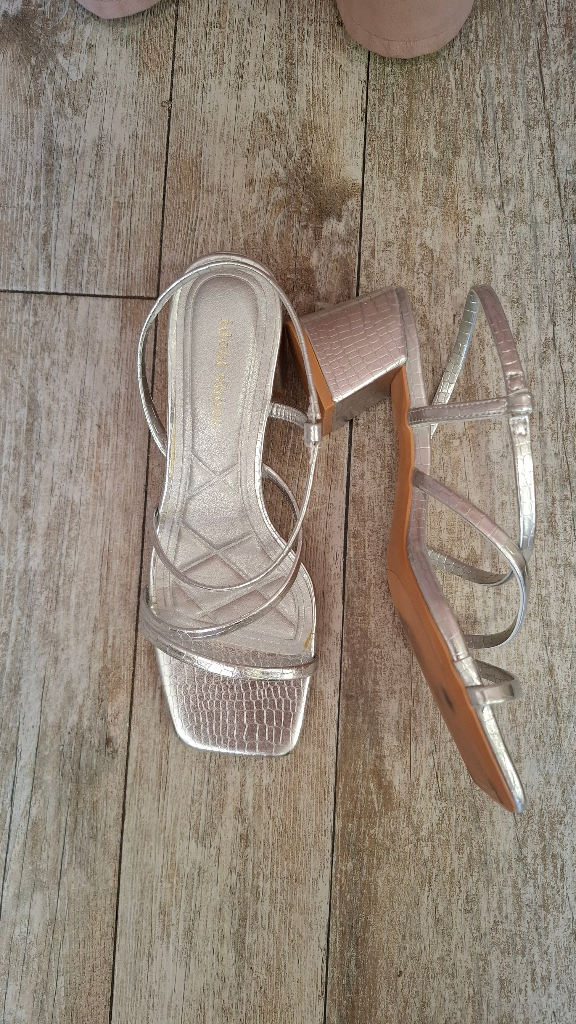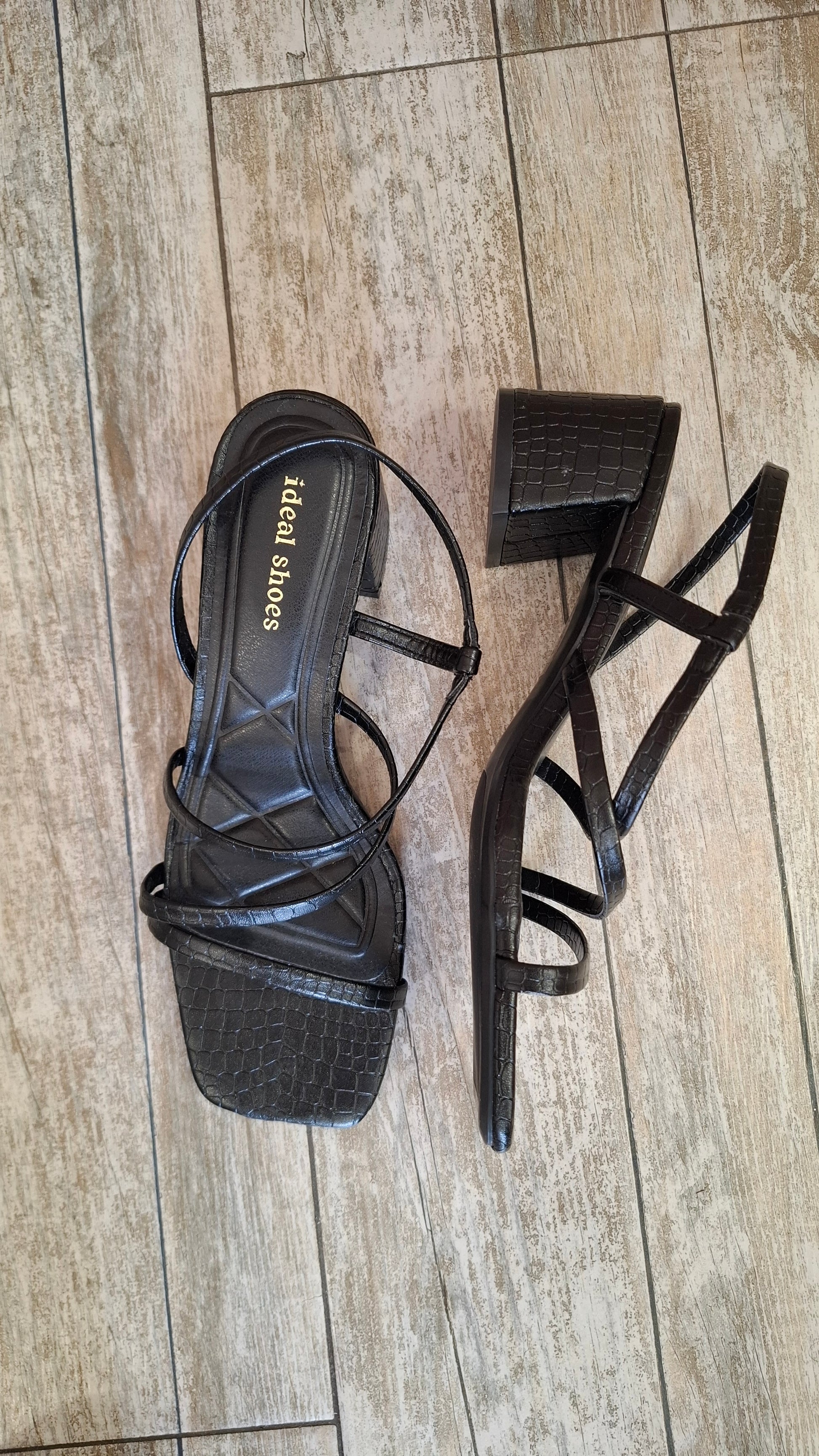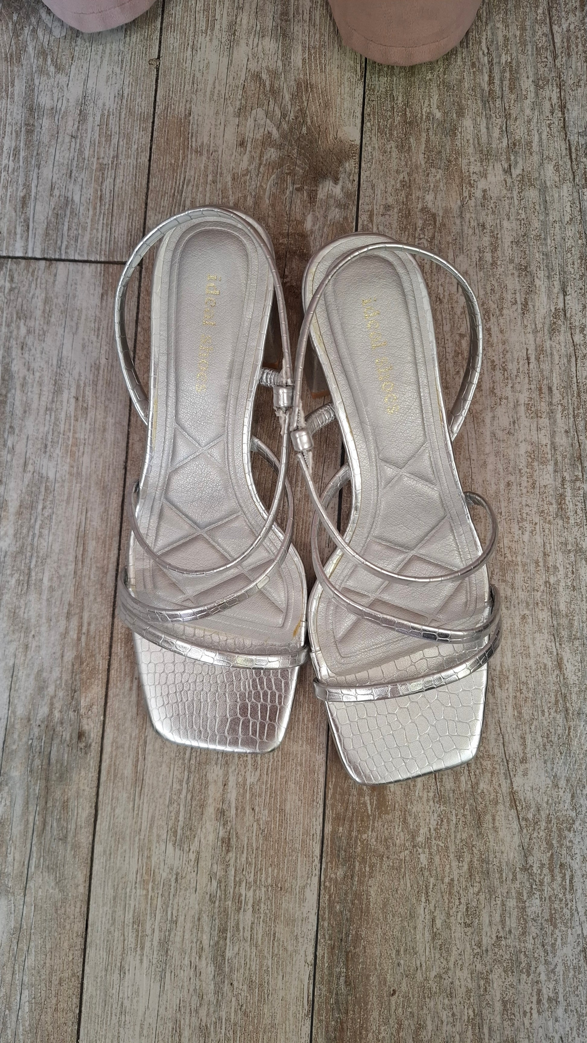 Un sandalo raffinato ed elegante, perfetto per slanciare la figura con stile. I cinturini sottili intrecciati avvolgono delicatamente il piede, mentre il tacco comodo lo rende ideale sia per cerimonie che per uscite serali. Disponibile in nero per un look deciso e in argento per aggiungere un tocco di luce a ogni outfit.